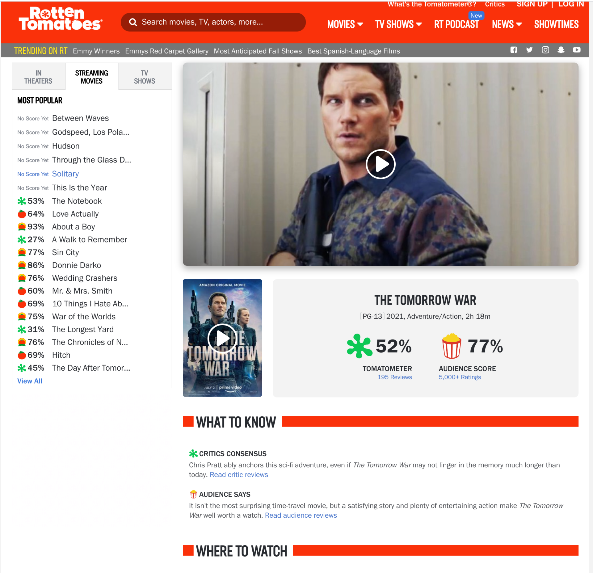 Above is the rotten tomatoes rating for the tomorrow war which is used as an example for quantitive research.